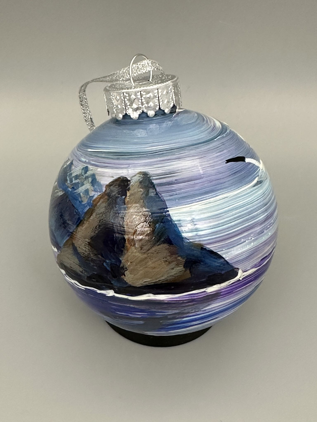 This hand-painted 8cm bauble captures the majestic Cuillin mountains of the Isle of Skye, Scotland in stunning detail. Each ornament is unique due to its variable coloration, making it a one-of-a-kind addition to your holiday decor. Bring a piece of Scottish charm to your home or gift it to a loved one for a touch of the Highlands this season. Perfect for tree decorations or as a keepsake to remind you of this beautiful corner of the world. Purchase yours today and add a touch of magic to your holiday festivities.